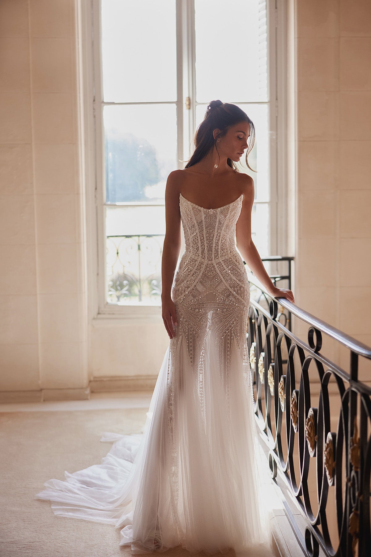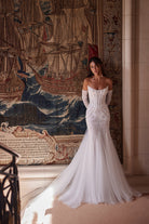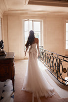 The Aletea Gown is a romantic blend of elegance and allure. Featuring a strapless sweetheart neckline, a beaded corset bodice, and a soft tulle skirt with a flowing train, it beautifully flatters the figure while exuding timeless sophistication. Perfect for the modern bride seeking effortless glamour.