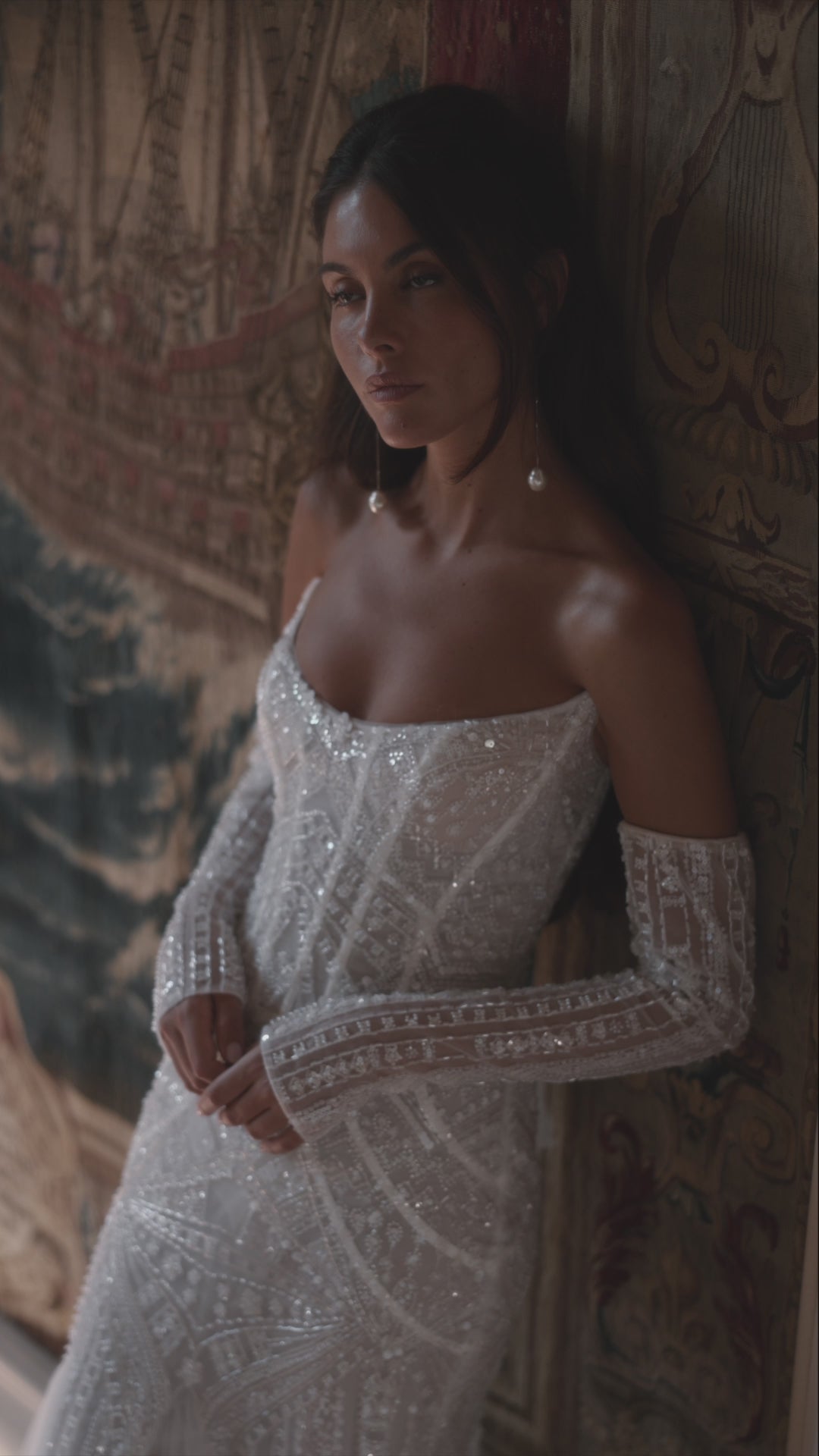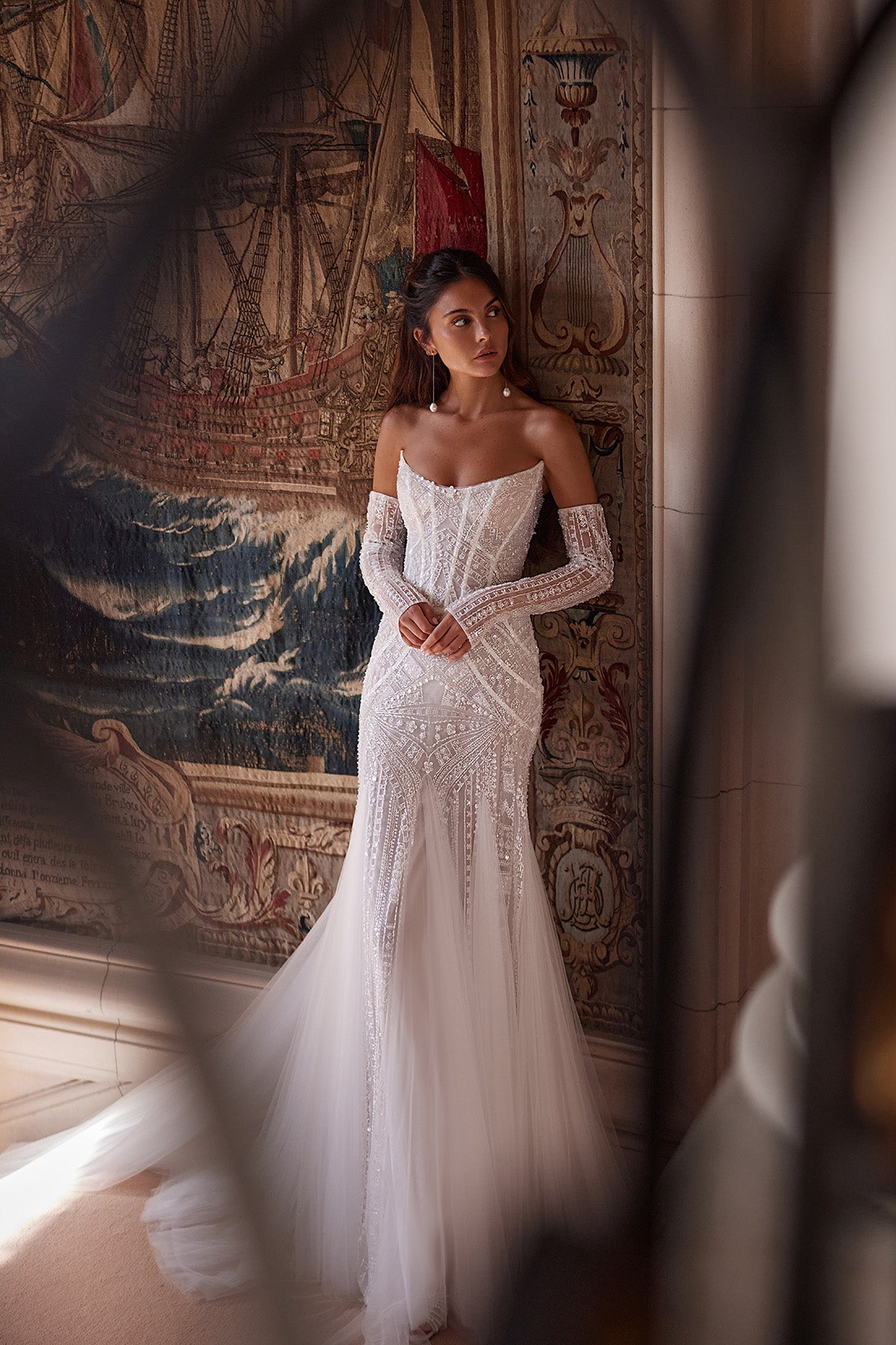 When the gown arrives at our store, our team, wearing clean gloves, meticulously checks it for even the smallest details.